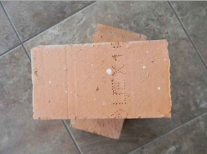На Рис.2.6. показан брак кирпича. Видны известковые вкрапления и пережег.